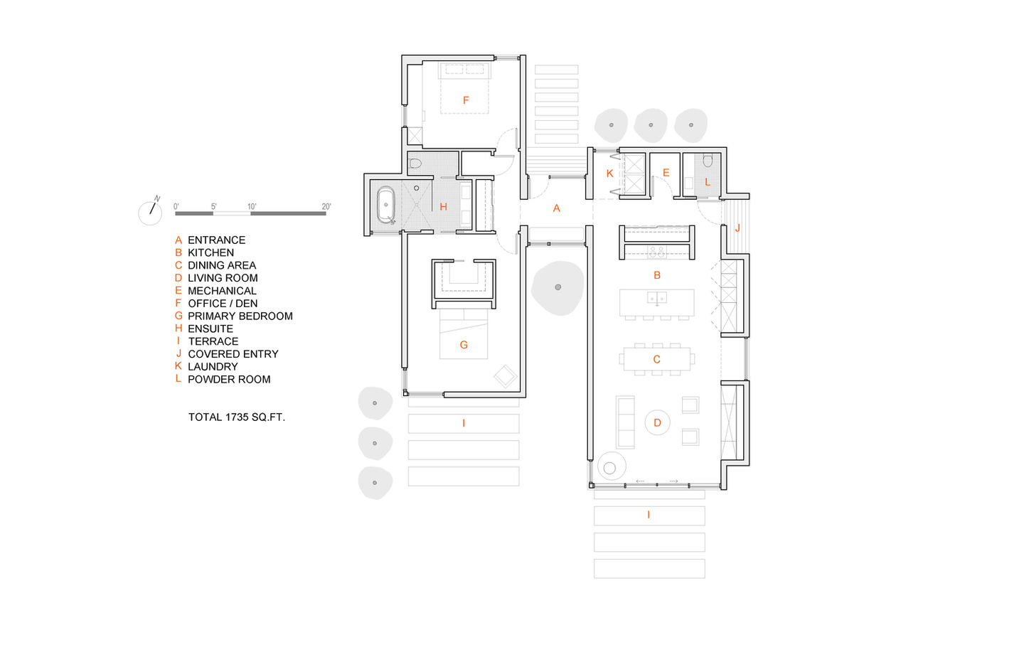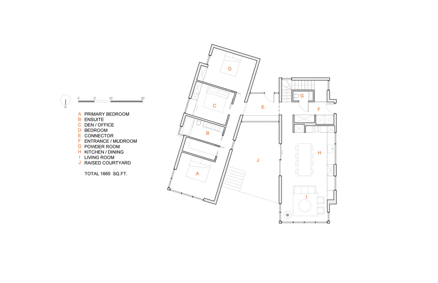 These rental cabins are a striking example of how much can be done in a relatively small space when well-designed. Each cabin has a slightly different layout, and although they are side-by-side, the placement of the entrance doors, as well as the recessed balconies, ensure that anyone staying there feels a sense of privacy. The exterior of the cabins are each entirely clad in black standing seam metal, while the interiors are clad in a white-washed pine. Each unit has a main level bedroom as well as a loft bedroom accessible via a ladder.